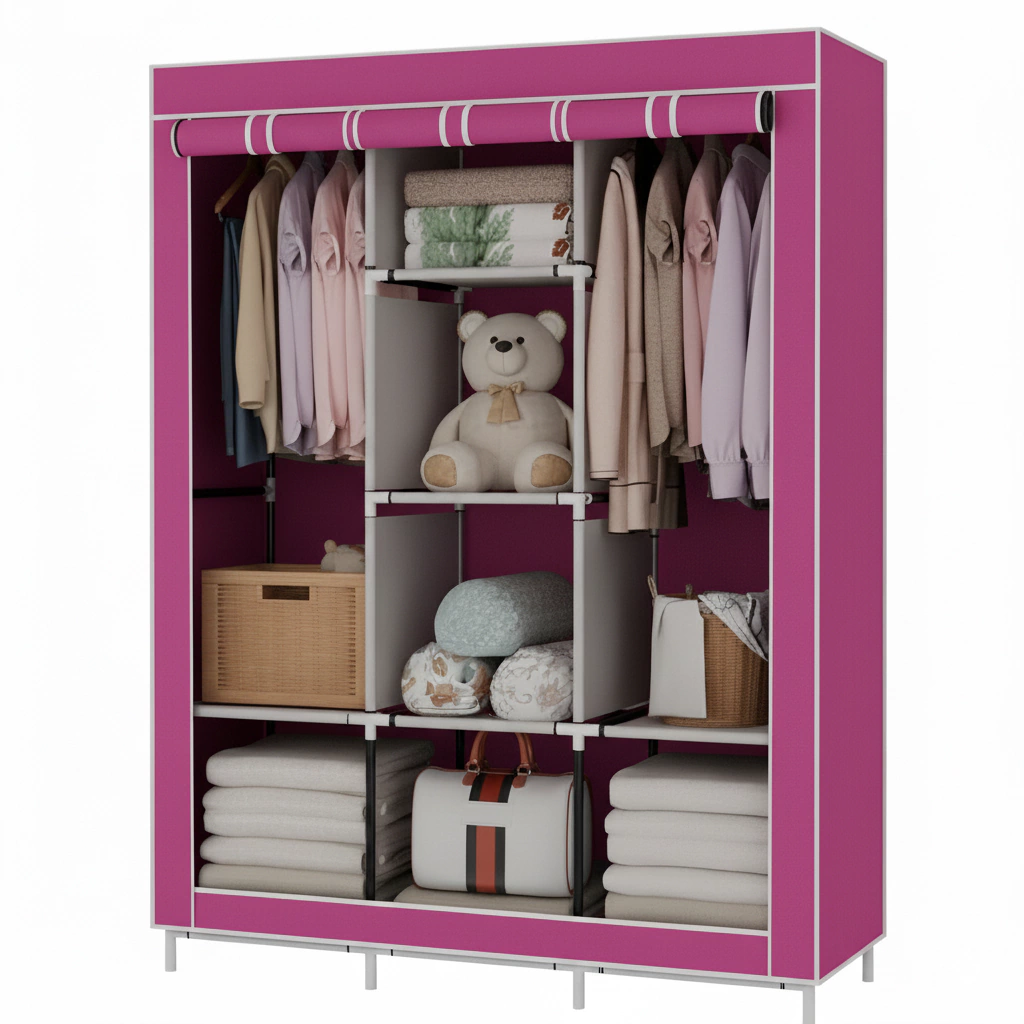 • 1 Armario organizador de ropa desarmable con estanterías (requiere armado).